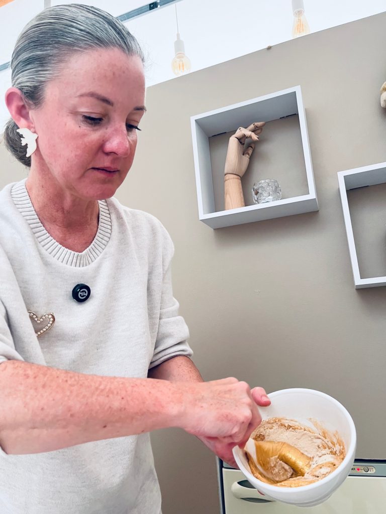 Lors du retrait du masque, Magali retire les excédents de pâte délicatement, et l’on se sent tout petit, tout fragile entre ses mains attentionnées.